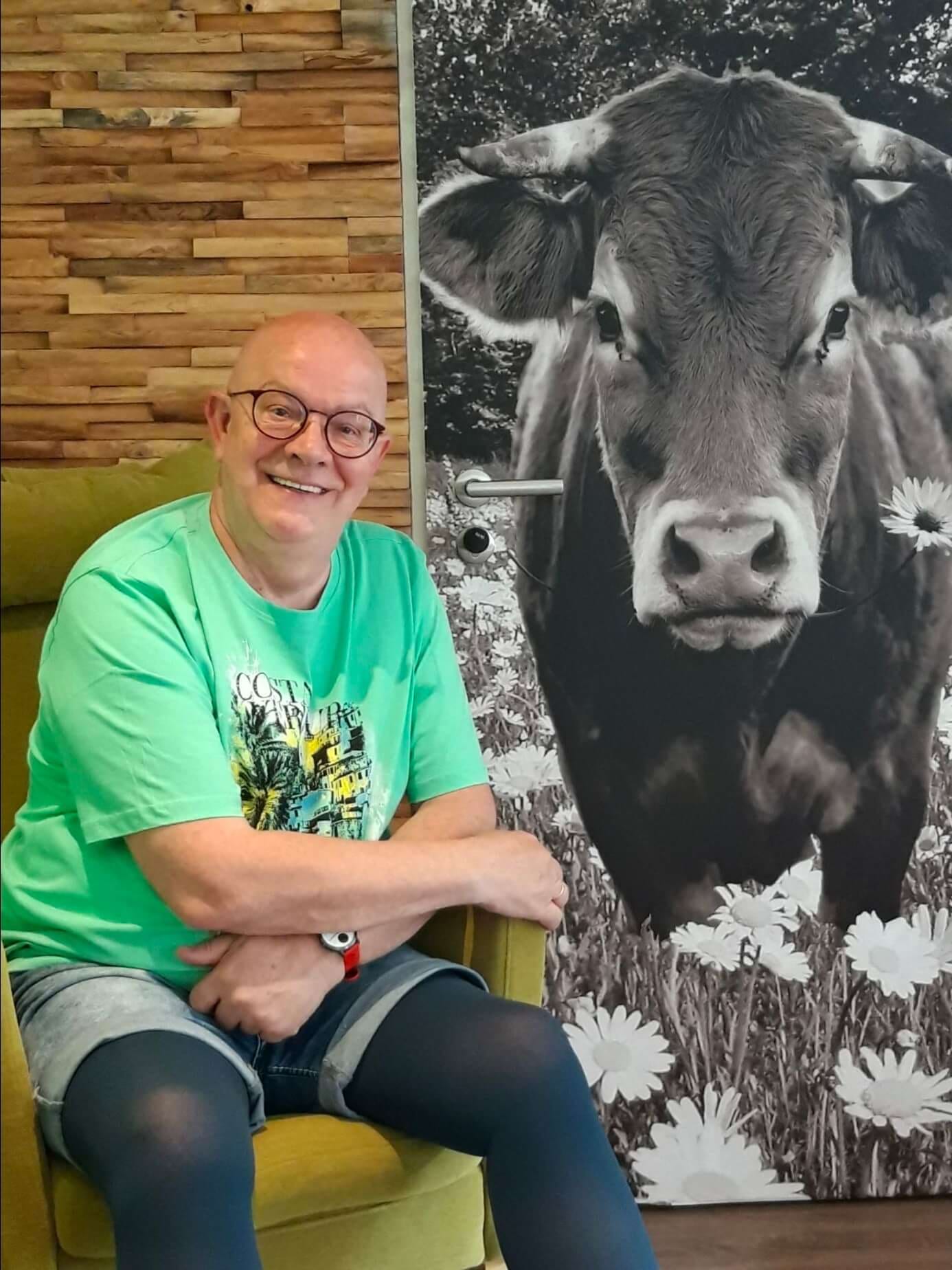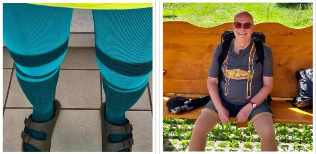 Thomas, Rentner, seit 2019 Rundstrickversorgung Strumpfhose KKL II wegen beidseitigem posttraumatischen Syndroms nach tiefer Venenthrombose in den Unterschenkeln und rechts in der Kniekehlenvene.